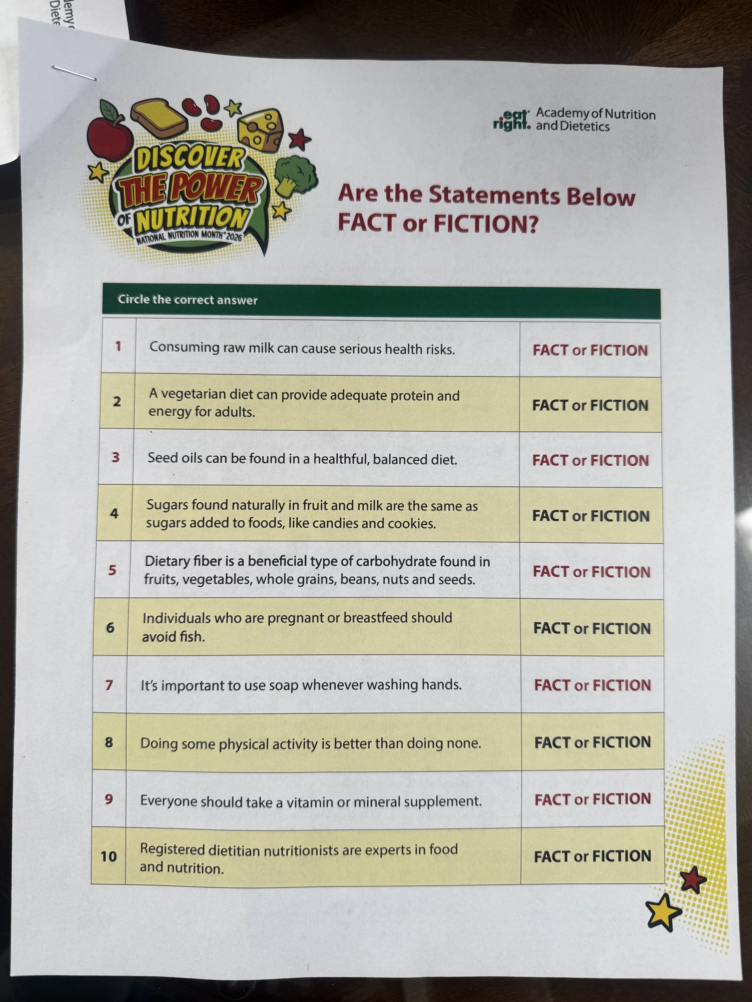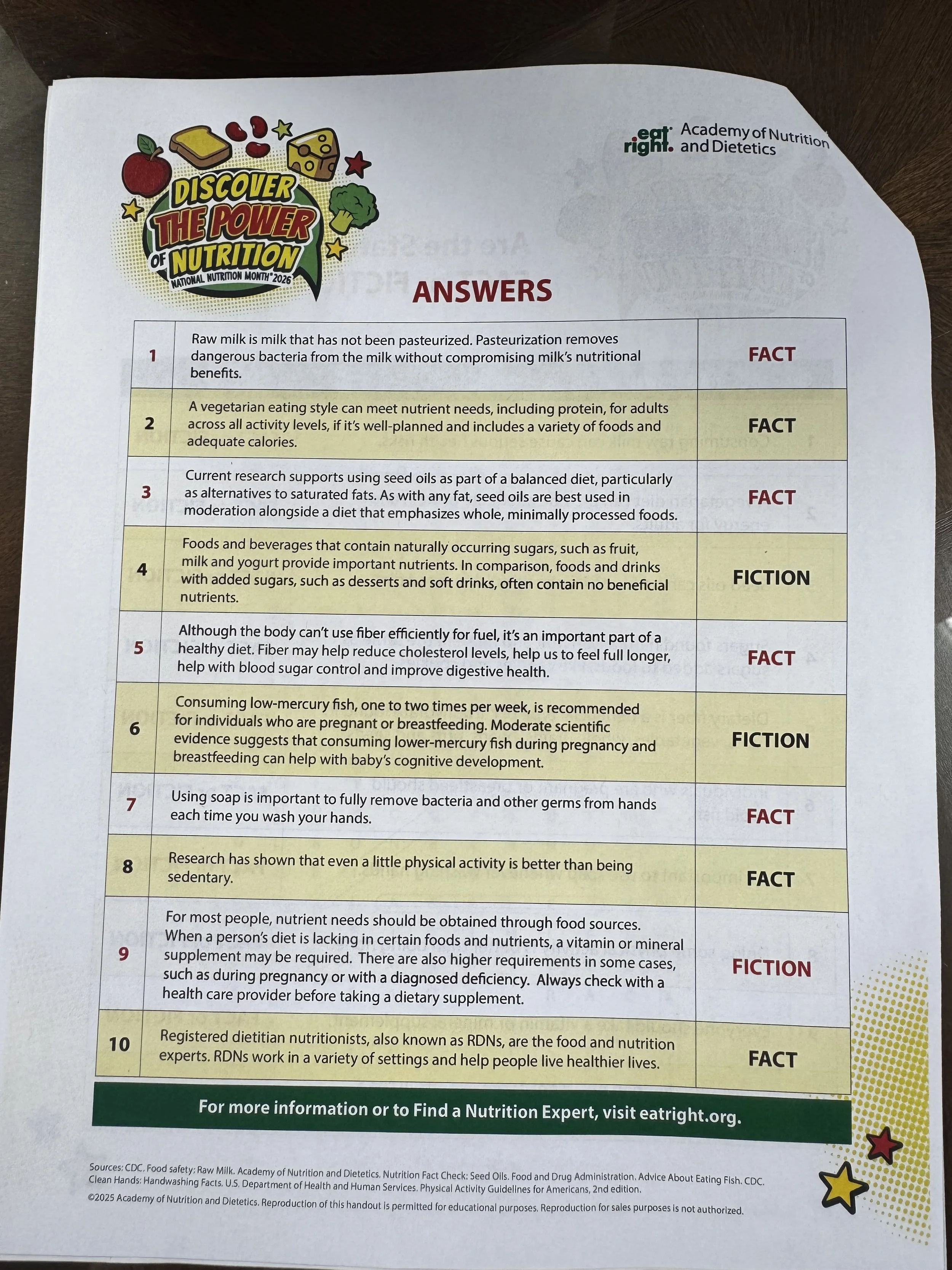 And perhaps most concerning, from a handout titled “Discover the power of nutrition: national nutrition month 2026”: