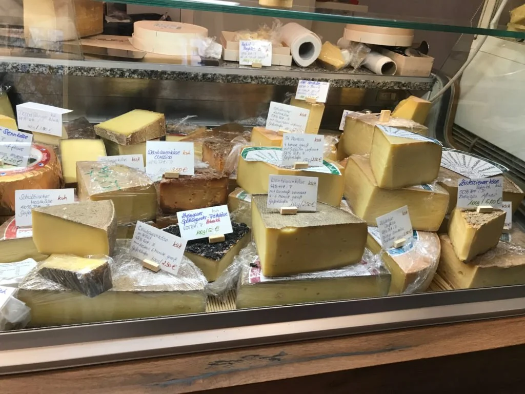 Cases of cheese in Berlin at a Christmas market the Schindlers visited in 2017