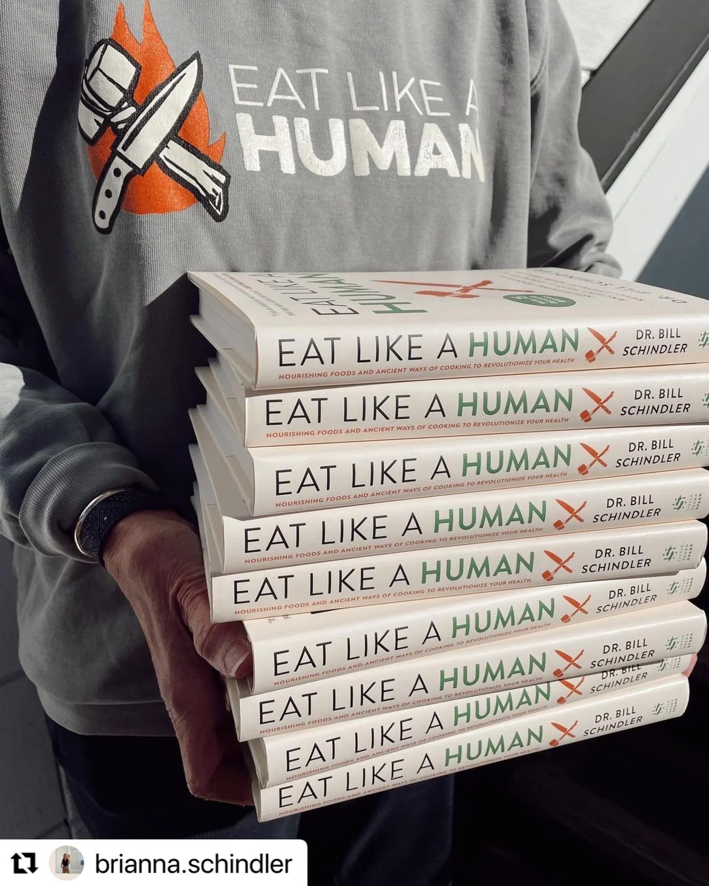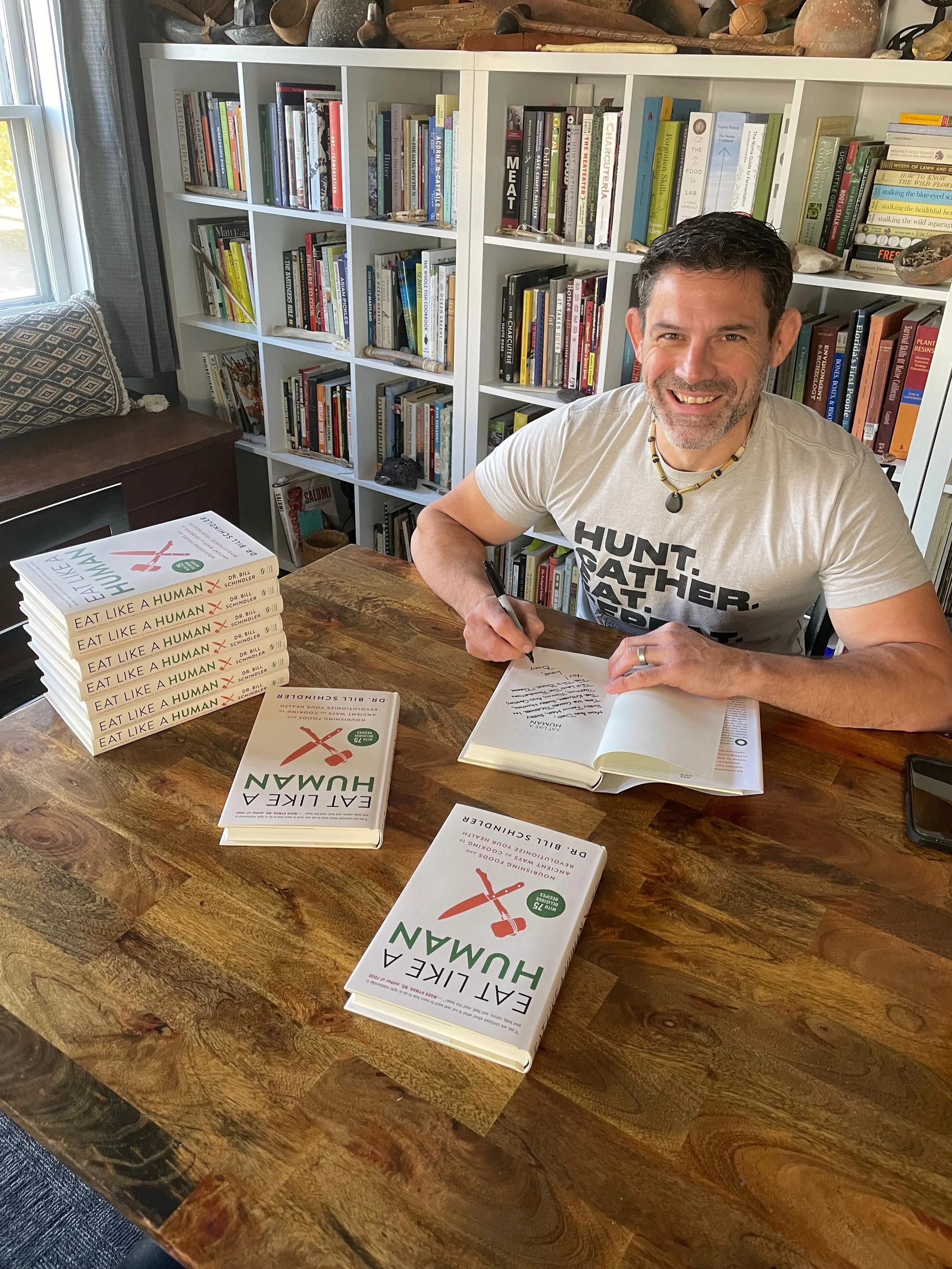 "Eat Like a Human" book by Dr. Bill Schindler on a table.